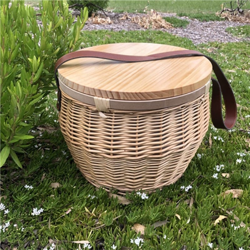 The perfect companion for any picnic or party. The handmade basket includes internal insulated lining with a zippered cover. The timber board is made from lacquered pine wood and the basket is supplied with one shoulder strap. Not recommended as a cheese board.