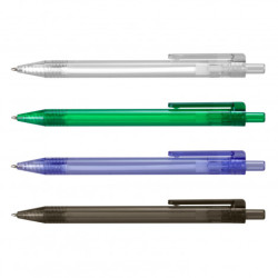 A simple slim and bright transparent coloured plastic pen, high quality ABS transparent plastic. Click action with high quality German manufactured black ink and tungsten carbide ball which brings you the better writing quality, 1200 meters writing distance.