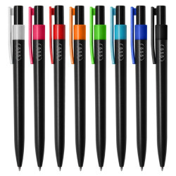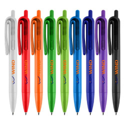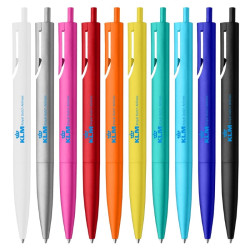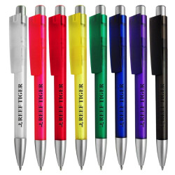 One of the most popular slim stylish plastic pen in promotions. Retractable pen with popular contoured design, high quality, affordable and a great solution for your next tradeshow, office re-supply or give away. Black barrel with coloured push button, neck, and tip. Cross-type German manufactured black ink and tungsten carbide ball which brings you the...