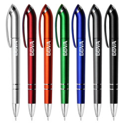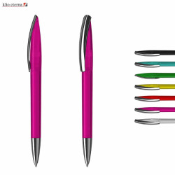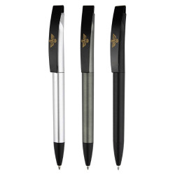 Eye-catching plastic ballpoint pen with shiny chrome trim and a retractable spring mechanism in the upper barrel. It has a stunning custom moulded clip that can be branded in spot or full colour. It has the choice of a blue or black X20 jumbo refill with 1800 metres of German manufactured Dokumental ink. A production lead time of 30 working days applies...