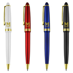 A classy elegant click action designed plastic pen with metallic gold accents. These crafted pens will be well representing your corporate image or products quality, be sure to reserve this pen for your next event. It has a cross-type German manufactured black ink and tungsten carbide ball which brings you the better writing quality, 1200 meters writing...