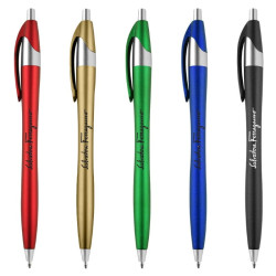 One of the most popular slim stylish plastic pen in promotions. Retractable pen with popular contoured design, high quality, affordable and a great solution for your next tradeshow, office re-supply or give away. Metallic coloured barrel with silver push button, neck, and tip. Cross-type German manufactured black ink and tungsten carbide ball which brings...