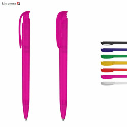 Click action European design plastic pen, frosted coloured barrel with matt silver trim, large printing area on clip. It has high quality German manufactured black ink refill, 1800 meters writing distance, tungsten carbide ball provides you with quality writing.
