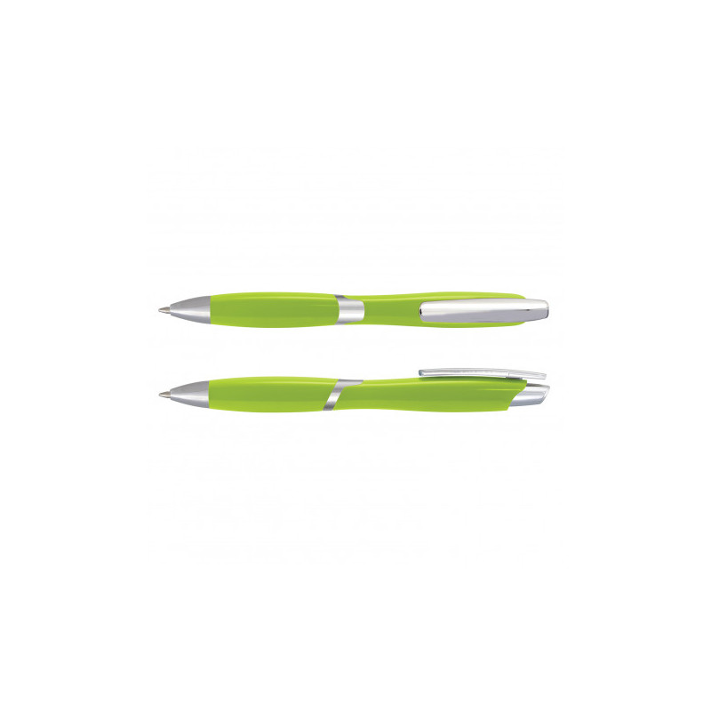 Coloured barrel twist action ballpoint pen with chrome highlights. Writing distance: 2.1 kilometres.