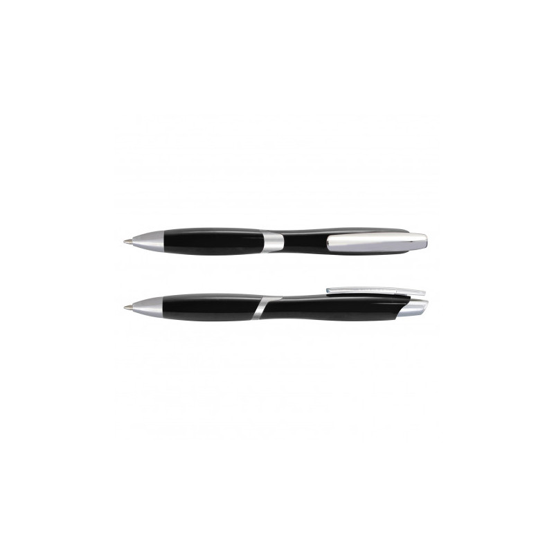 Push button ballpoint pen with black ink and gloss barrel. Writing distance: 2.1 kilometres.