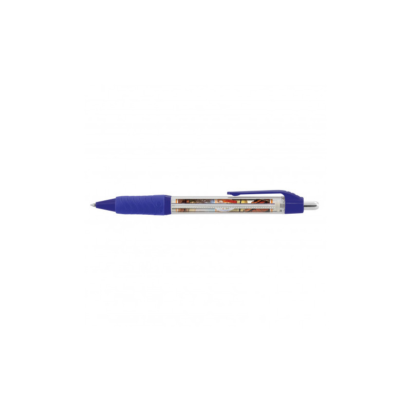 Transparent push button ballpoint pen with comfort grip. Writing distance: 2.1 kilometres.