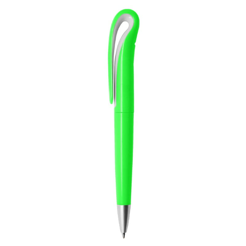 Coloured barrel twist action ballpoint pen with chrome highlights. Writing distance: 2.1 kilometres.