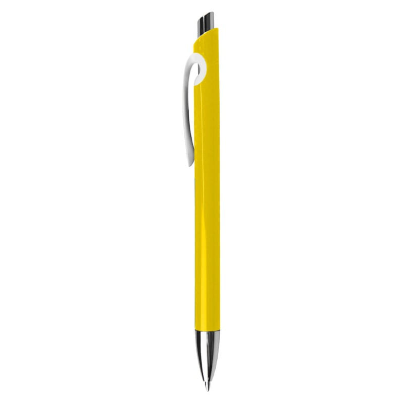 Solid colour push button ballpoint pen with chrome highlights. Writing distance: 2.1 kilometres. TC roller ball. Blue pigment ink. ABS
