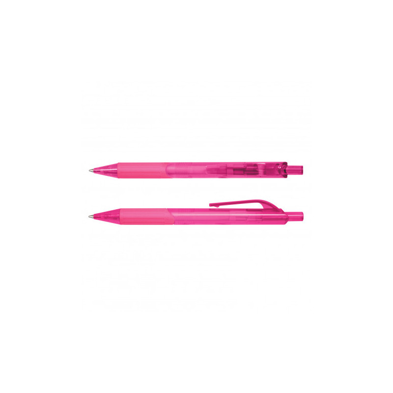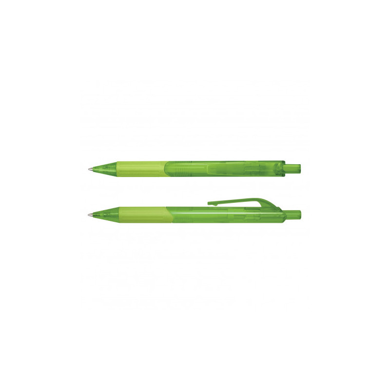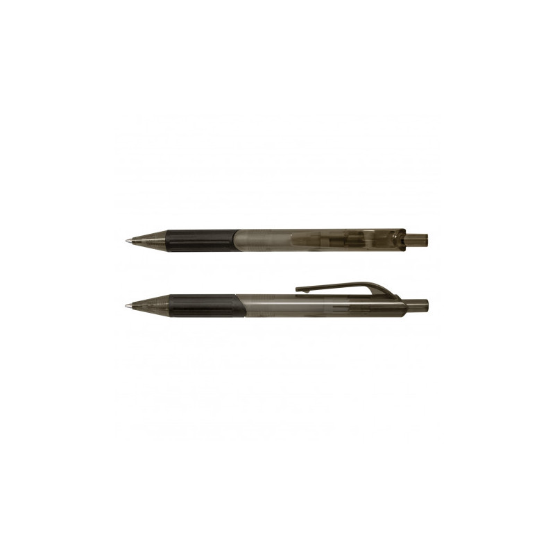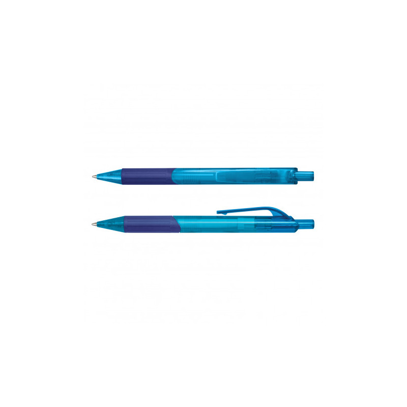 Transparent push button ballpoint pen with comfort grip. Writing distance: 2.1 kilometres.