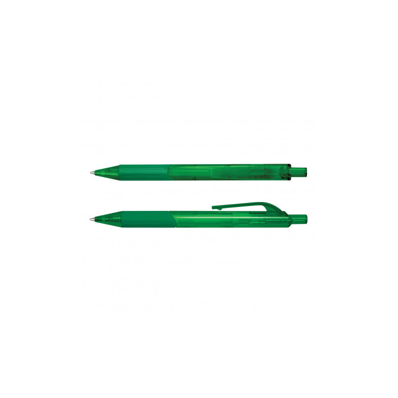 Retractable ballpoint pen with a translucent barrel manufactured from recycled PET (RPET) plastics. It has a blue refill with 1200m of Dokumental ink.