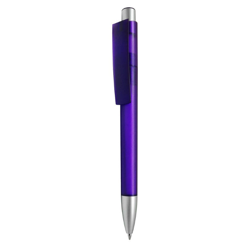 Solid colour push button ballpoint pen with chrome highlights. Writing distance: 2.1 kilometres. TC roller ball. Blue pigment ink. ABS
