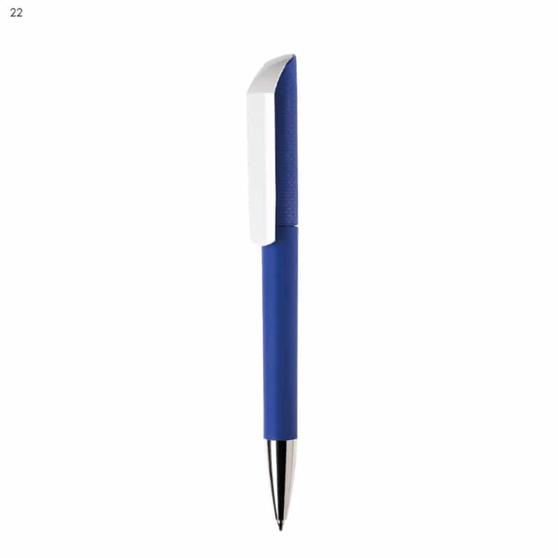 Solid colour push button ballpoint pen with chrome highlights. Writing distance: 2.1 kilometres. TC roller ball. Blue pigment ink. ABS