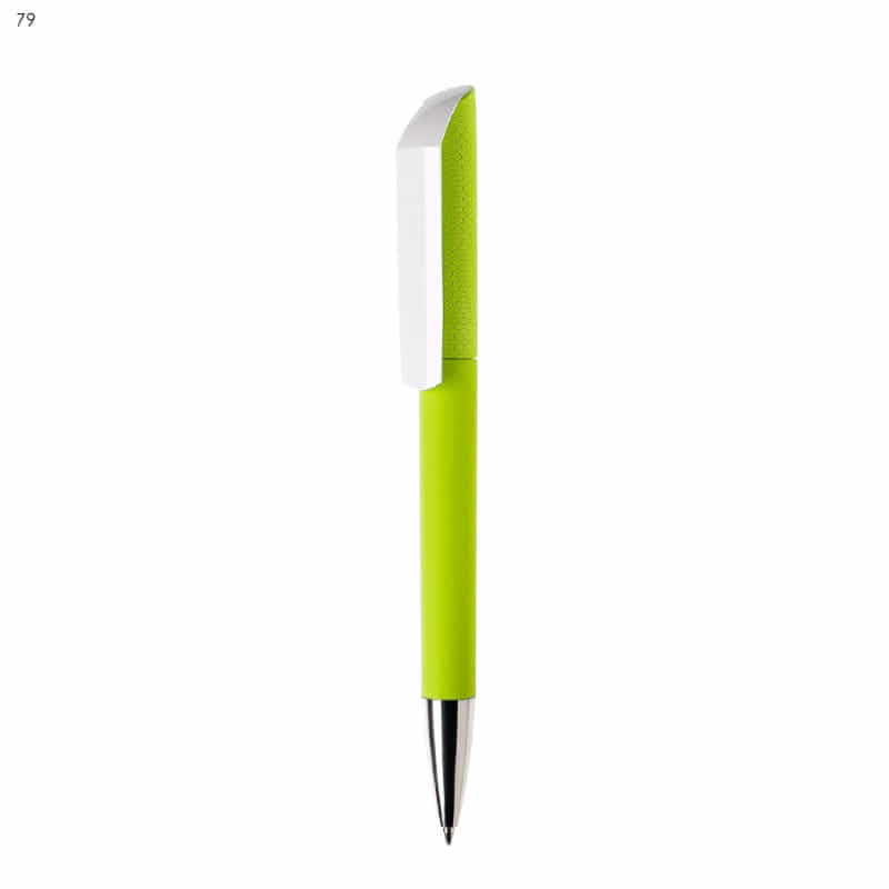 Push button ballpoint pen with solid colour rubber grip. Writing distance: 2.1 kilometres.