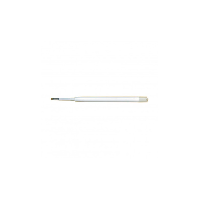Push button ballpoint pen with black ink. White barrel with chrome button, tip and highlight ring. Matching coloured clip and grip. Writing distance: 2.1 kilometres.
