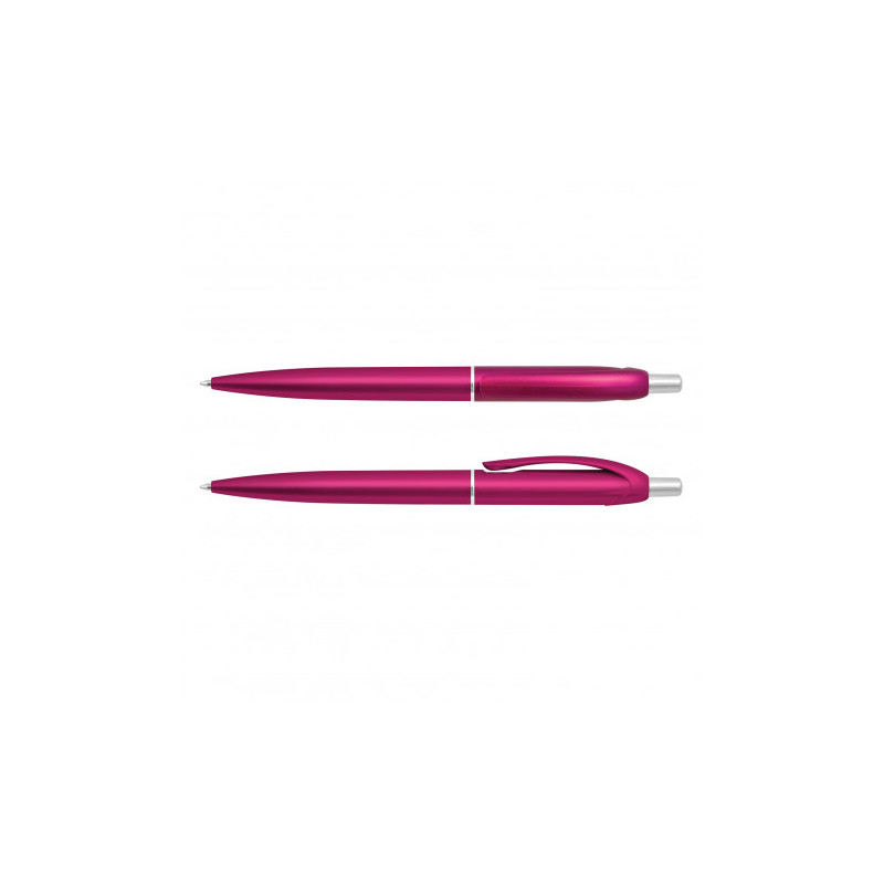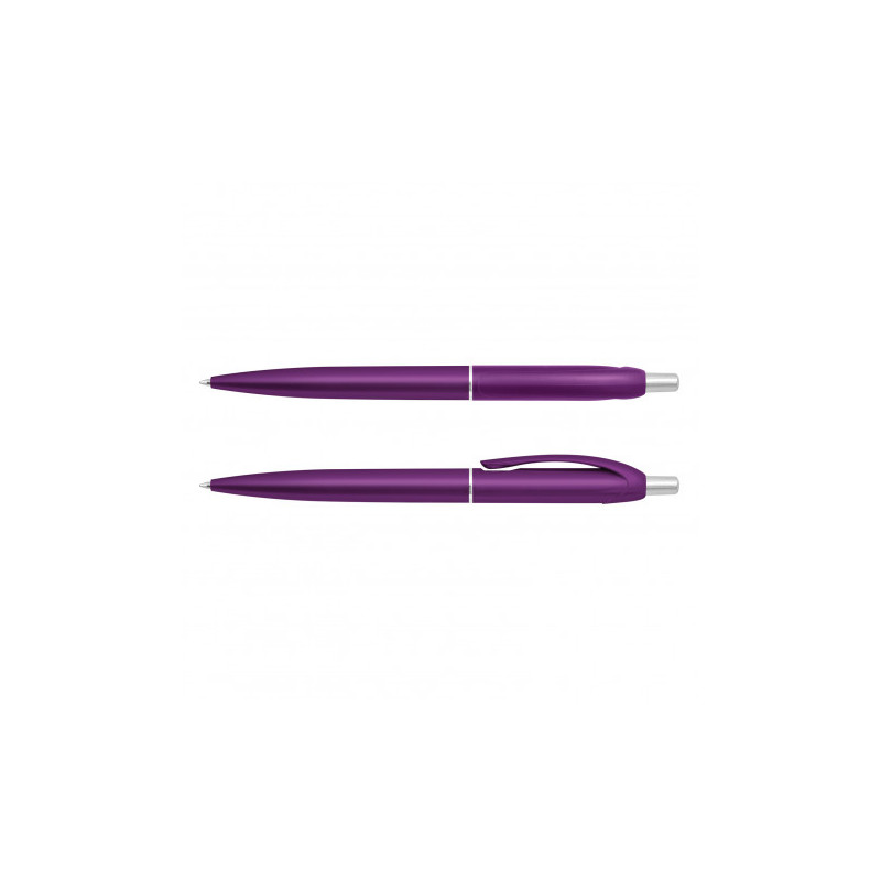 Solid colour push button ballpoint pen with chrome highlights. Writing distance: 2.1 kilometres. TC roller ball. Blue pigment ink. ABS