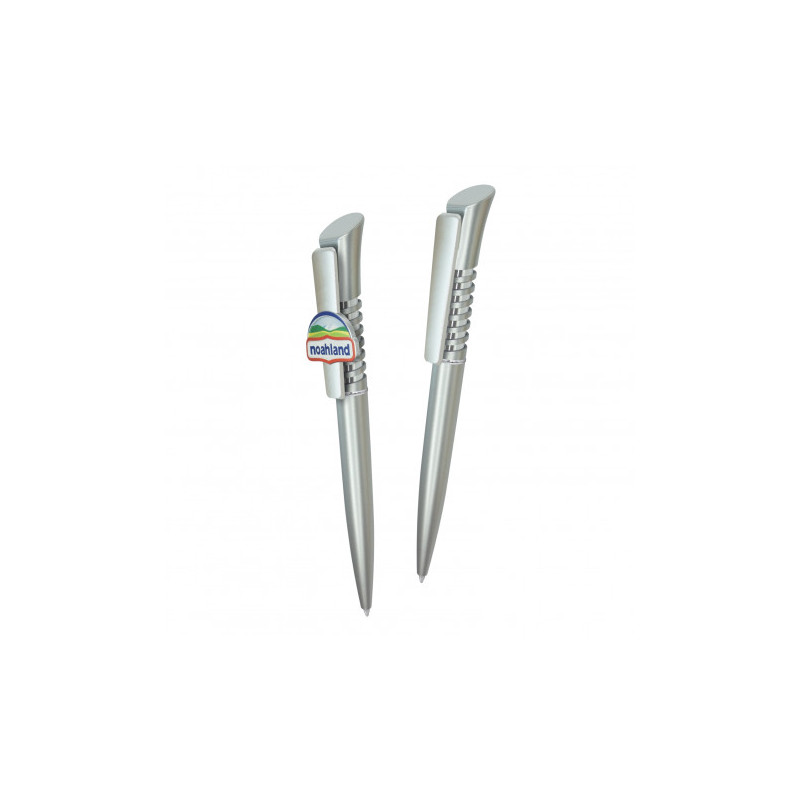 Two-Tone concertina push action ballpoint pen with flat pocket clip. Writing distance: 2.1 kilometres.