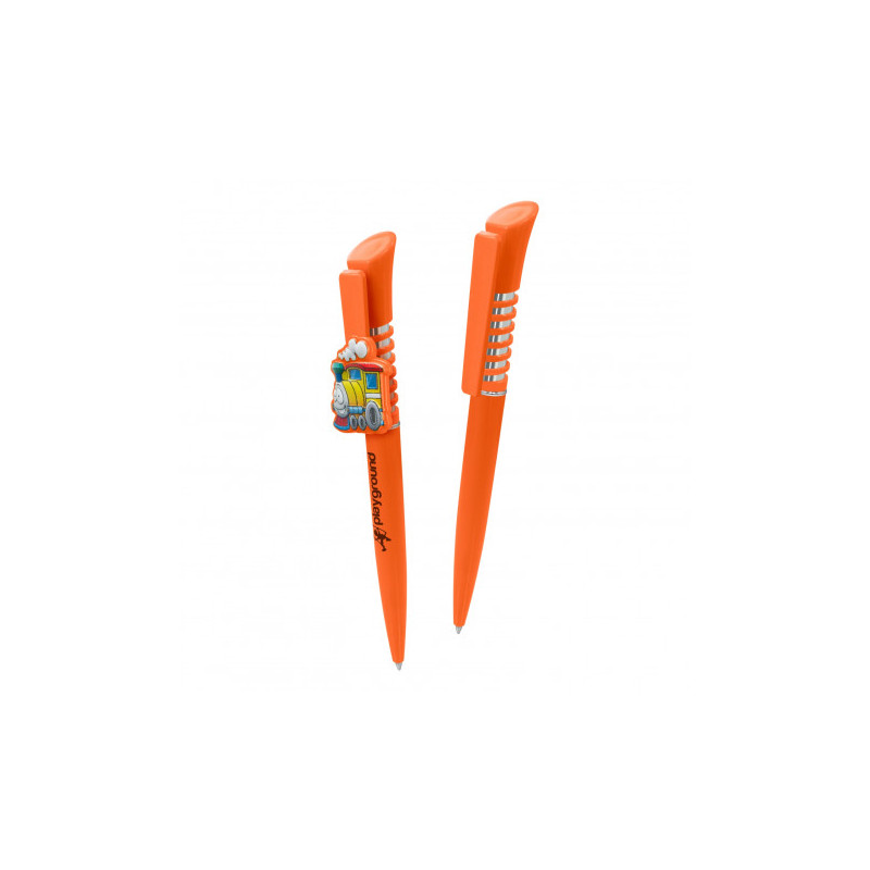 Push button ballpoint pen with solid colour rubber grip. Writing distance: 2.1 kilometres.