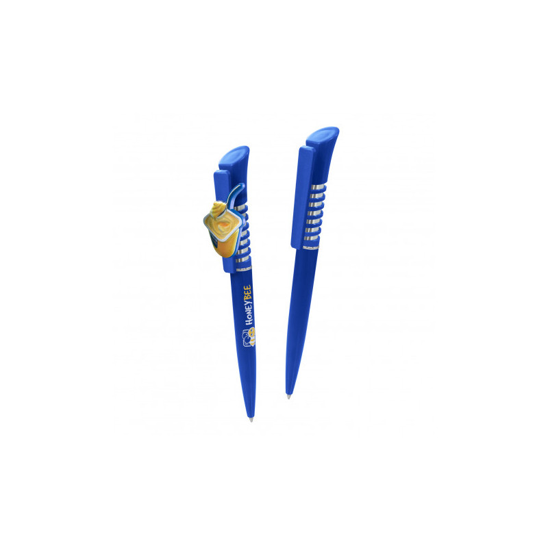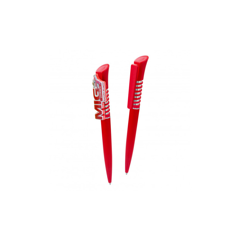 Push button ballpoint pen with metal clip. Jumbo refill. Writing distance: 2.1 kilometres.