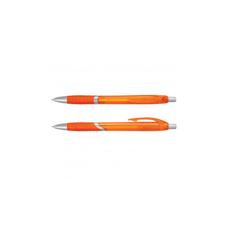 Transparent push button ballpoint pen with comfort grip. Writing distance: 2.1 kilometres.