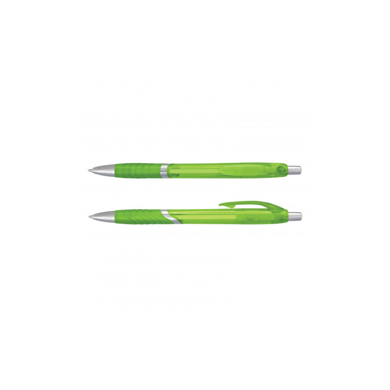 Push button ballpoint pen with solid colour rubber grip. Writing distance: 2.1 kilometres.