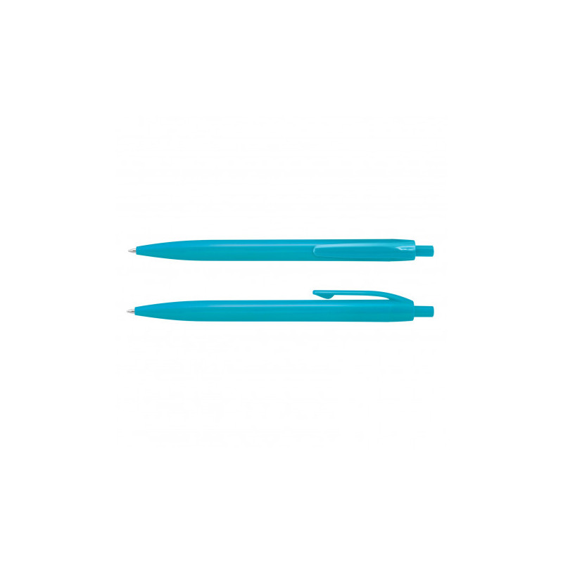 Solid colour push button ballpoint pen with chrome highlights. Writing distance: 2.1 kilometres. TC roller ball. Blue pigment ink. ABS