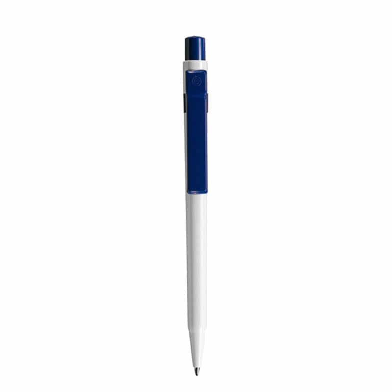 Retractable ballpoint pen made from recycled ABS plastic with a matte finish. It has a blue refill with 500 metres of German manufactured Dokumental ink. A recycled symbol is printed on the barrel.