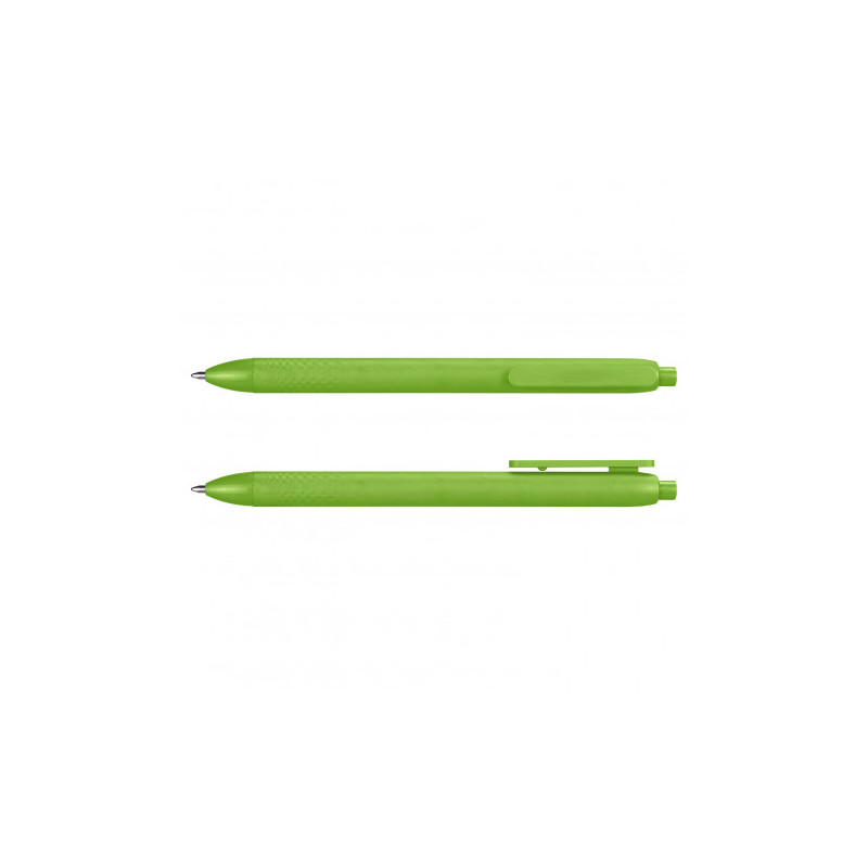 Push button ballpoint pen with solid colour rubber grip. Writing distance: 2.1 kilometres.