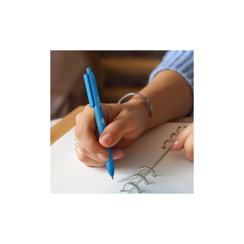 Retractable ballpoint pen with a translucent barrel manufactured from recycled PET (RPET) plastics. It has a blue refill with 1200m of Dokumental ink.