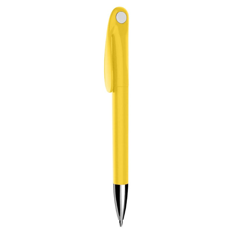 Solid colour push button ballpoint pen with chrome highlights. Writing distance: 2.1 kilometres. TC roller ball. Blue pigment ink. ABS