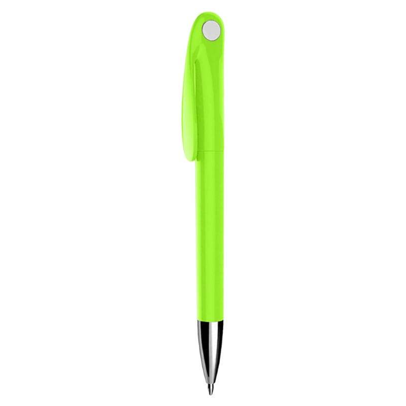 Coloured barrel twist action ballpoint pen with chrome highlights. Writing distance: 2.1 kilometres.
