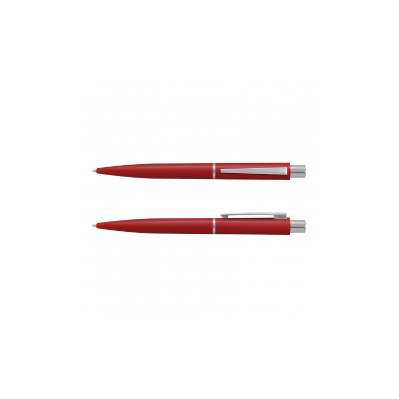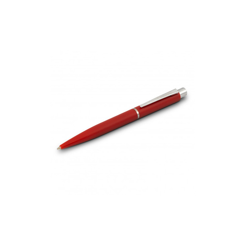Push button ballpoint pen with solid colour rubber grip. Writing distance: 2.1 kilometres.