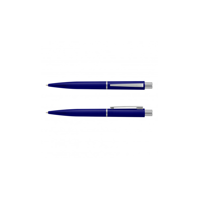 Solid colour push button ballpoint pen with chrome highlights. Writing distance: 2.1 kilometres. TC roller ball. Blue pigment ink. ABS