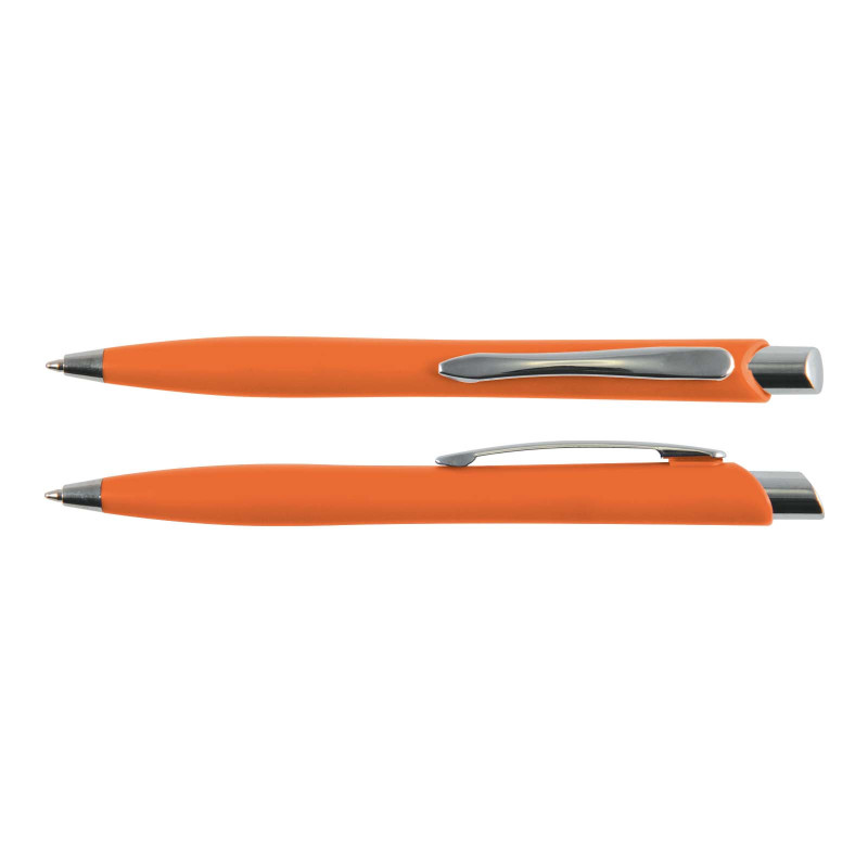 Push button ballpoint pen with solid colour rubber grip. Writing distance: 2.1 kilometres.