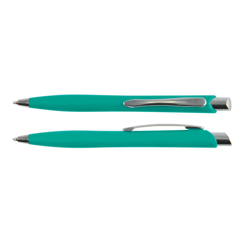Solid colour push button ballpoint pen with chrome highlights. Writing distance: 2.1 kilometres. TC roller ball. Blue pigment ink. ABS