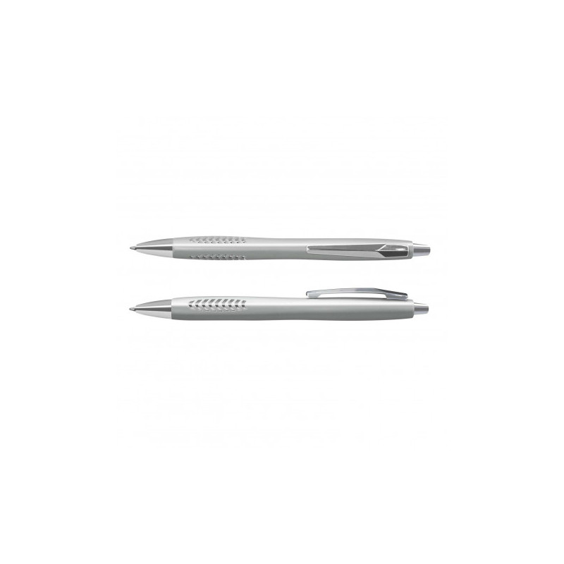 Push button top ballpoint pen with comfort grip. Silver barrel with coloured grip. Writing distance: 2.1 kilometres.