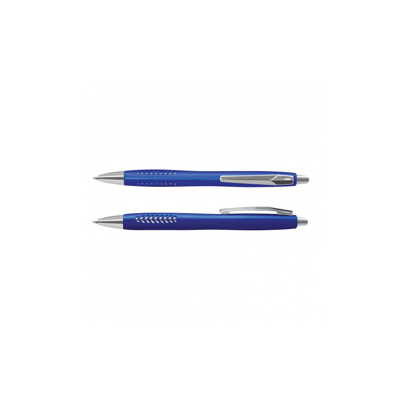 Solid colour push button ballpoint pen with chrome highlights. Writing distance: 2.1 kilometres. TC roller ball. Blue pigment ink. ABS
