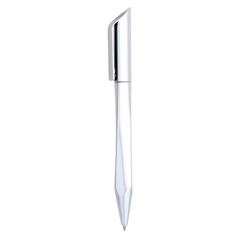 Retractable plastic ballpoint pen which has a soft-touch matte finish and shiny chrome trim. It has a black refill with 1200 metres of German manufactured Dokumental ink.
