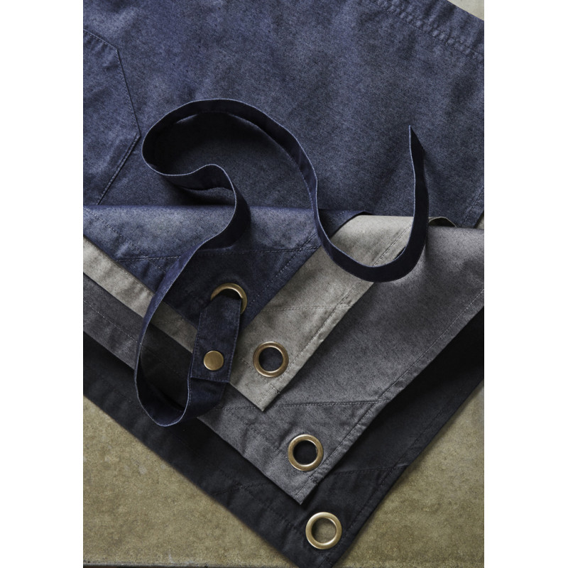 Fashion inspired 280gsm denim apron with metal eyelets and a pocket on the front.