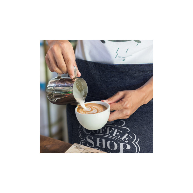 Fashion inspired 280gsm denim apron with metal eyelets and a pocket on the front.