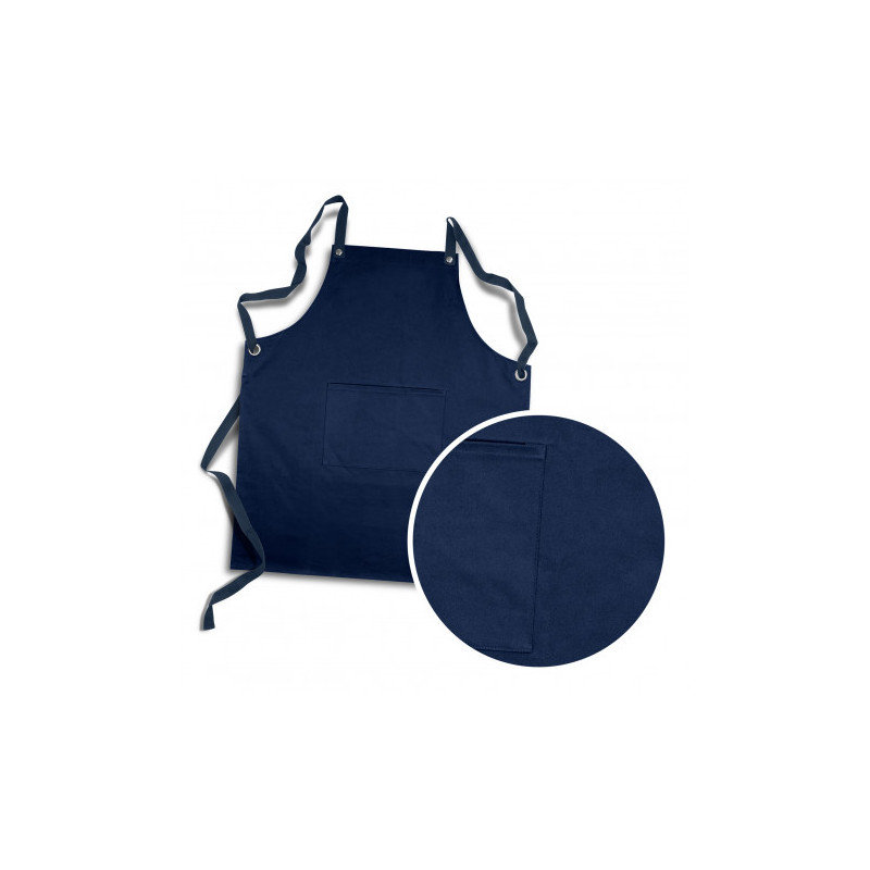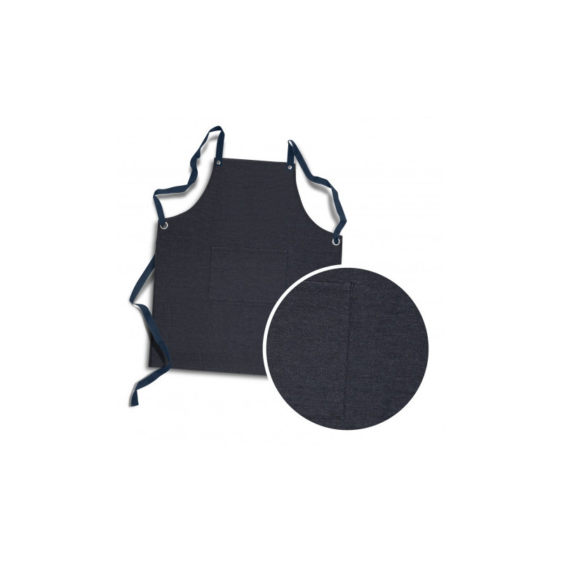 Fashion inspired 280gsm denim apron with metal eyelets and a pocket on the front.