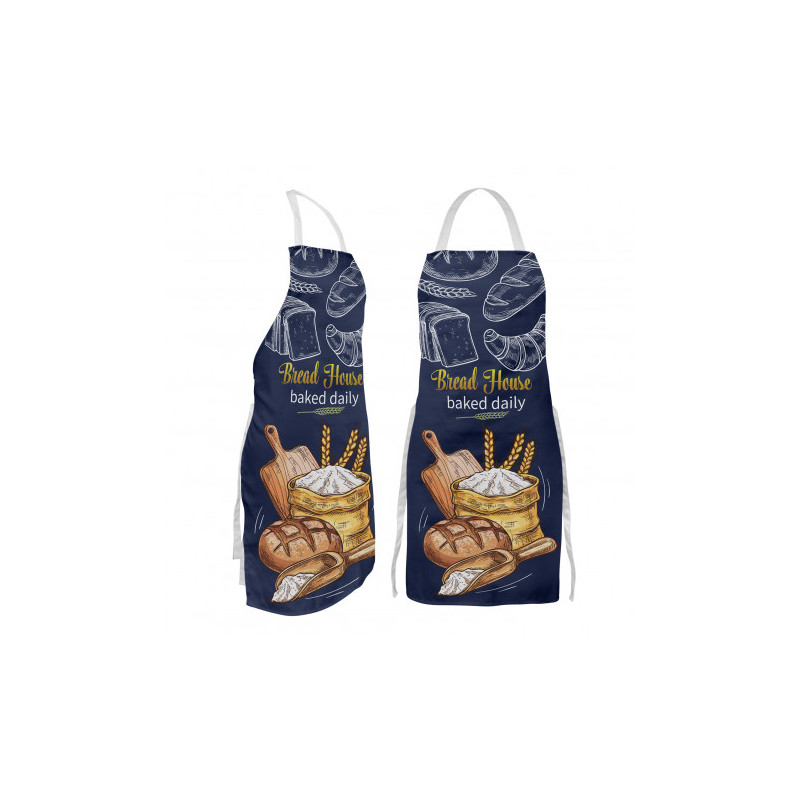 Bib apron with adjustable halter self fabric strap around neck,Unique styling,Towel loop at back of apron,1 Large central front pocket with special side slide pen and bottle opener provision,Free size 97cm x 86cm. Fabric: 65% Polyester, 35% Cotton Twill,190 GSM.
