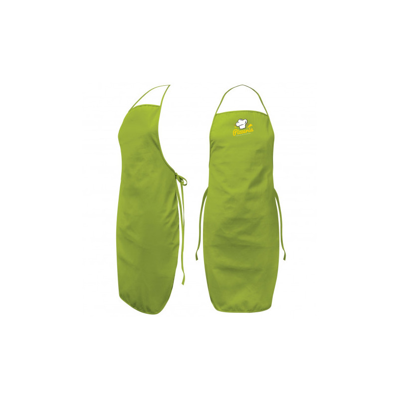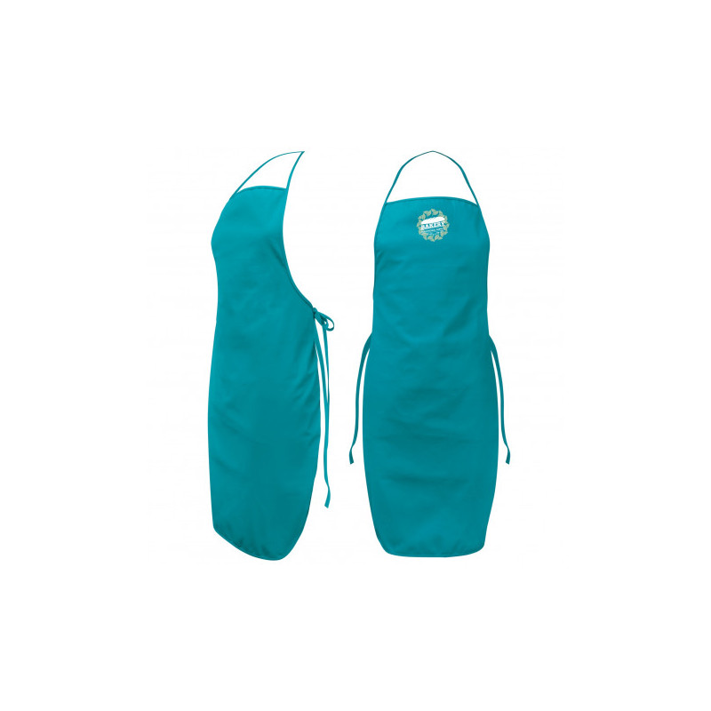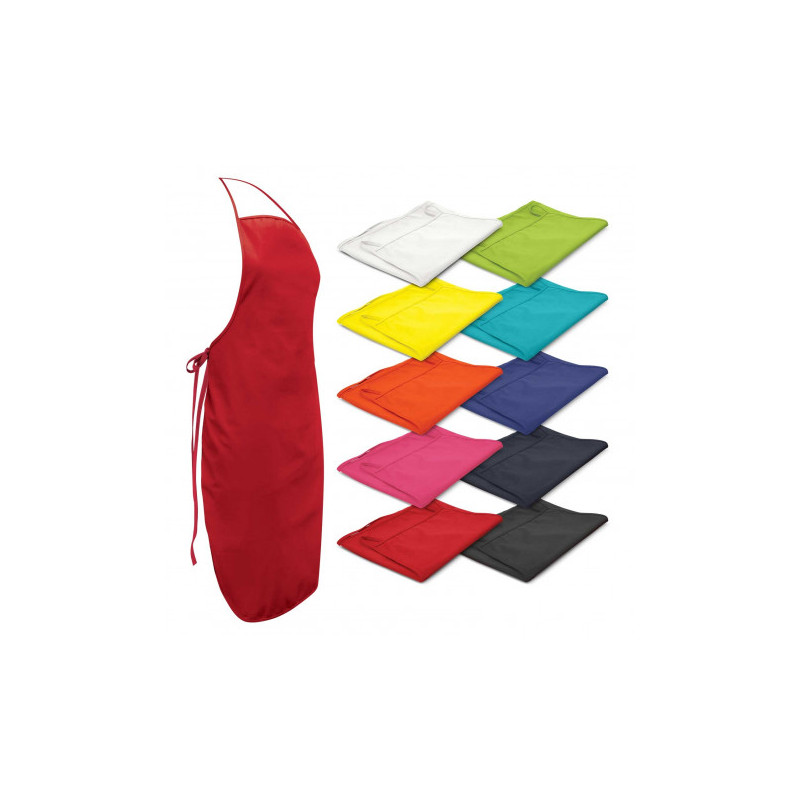 Bib apron with adjustable halter self fabric strap around neck,Unique styling,Towel loop at back of apron,1 Large central front pocket with special side slide pen and bottle opener provision,Free size 97cm x 86cm. Fabric: 65% Polyester, 35% Cotton Twill,190 GSM.