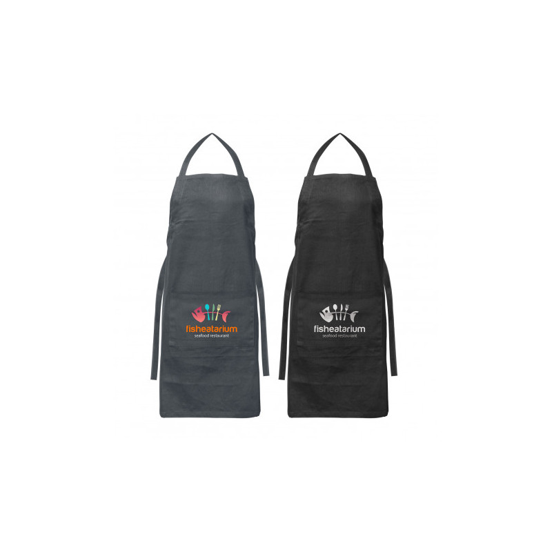 At our company, we offer a range of conference merchandise and products, including the Savoy Bib Apron. The minimum order quantities (MOQs) vary depending on the product and how it's decorated—whether printed or otherwise.