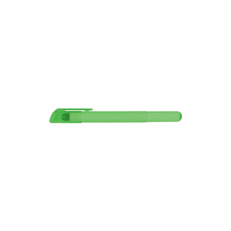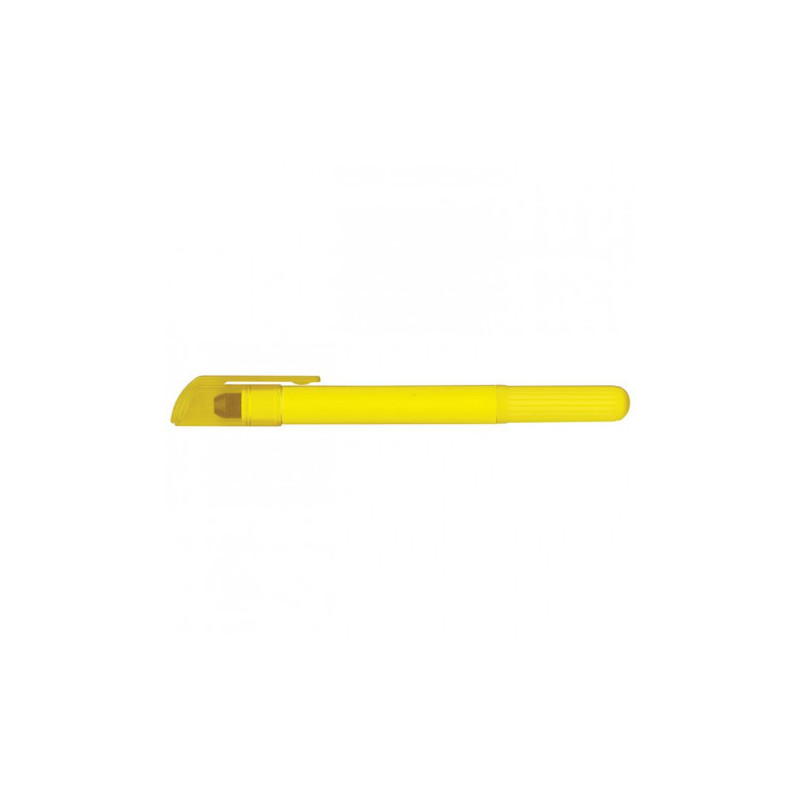 Liquid filled highlighter with airlock valve to stop it drying up. Simply push the tip down to let the ink flow.