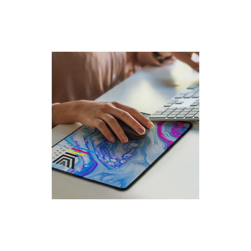 Smart mouse mat which is manufactured from polyester with a non-slip rubber base.