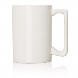 Stylish square ceramic mug with comfort-fit handle. 300ml capacity. Boxed.