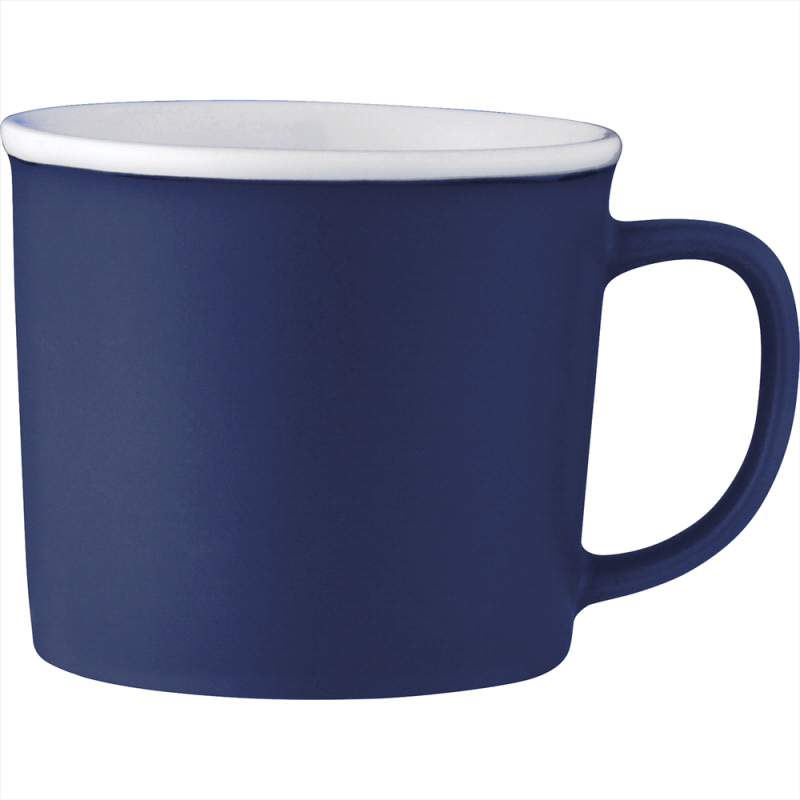 Cozy ceramic mug with a regal matte finish and a glossy inner, lip, and handle. 350ml capacity. Available in 4 colours