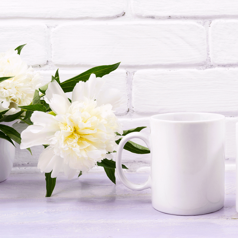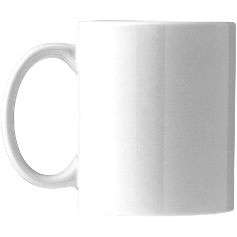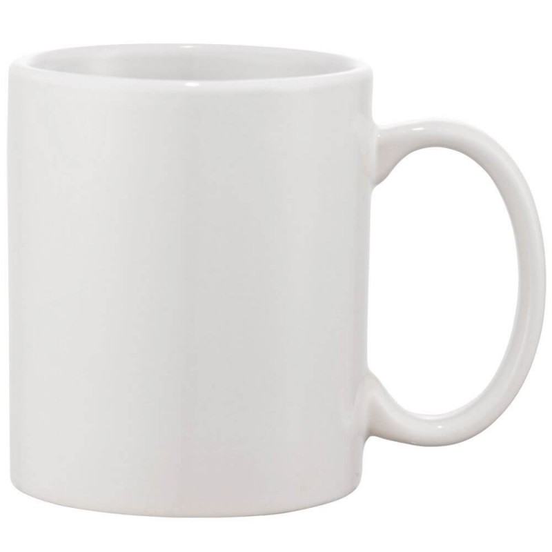 Standard mug with white lining, external white glossy finish with sublimation coating and white coloured handle.