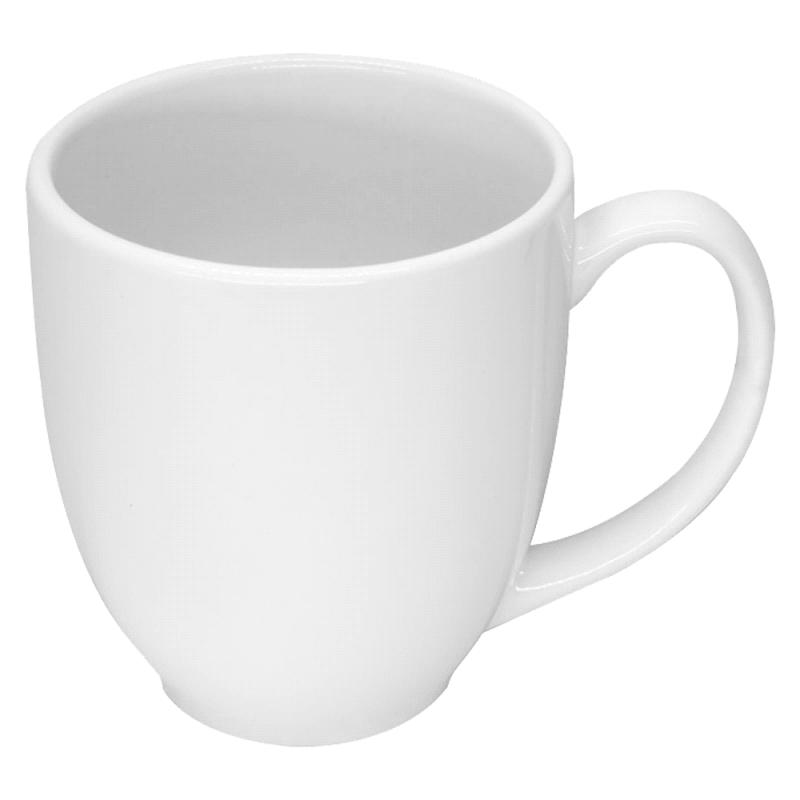 Standard mug with white lining, external white glossy finish with sublimation coating and white coloured handle.