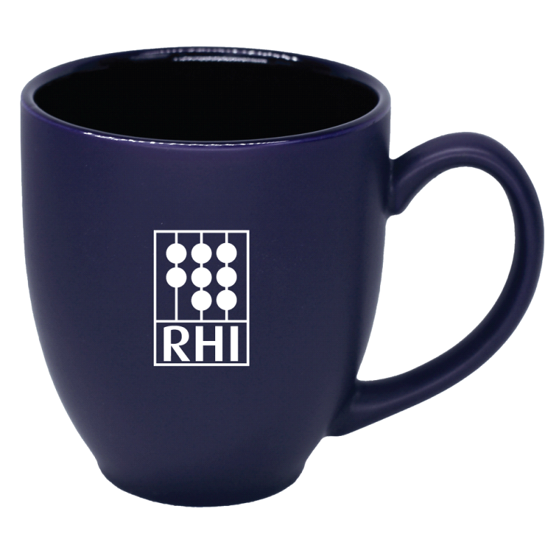 White ceramic mug with blue colour lining and handle. 410ml capacity. Available in 3 colours.